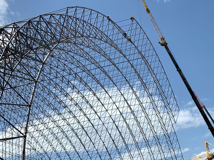 (2)网架加工前应对现场尺寸进行复测,确认无误后方可进行加工、安装;网架制作、运输、安装应遵守《空间网格结构技术规程》JGJ7-2010、《钢网架宜兴螺栓球节点》JG/T 10-2009、《钢网架宜兴螺栓球节点用高强度螺栓》 GB/T 16939-2016、《宜兴钢结构宜兴工程宜兴施工规范》 GB50755-2012、《宜兴钢结构宜兴工程施工质量验收标准》 GB50205-2020。